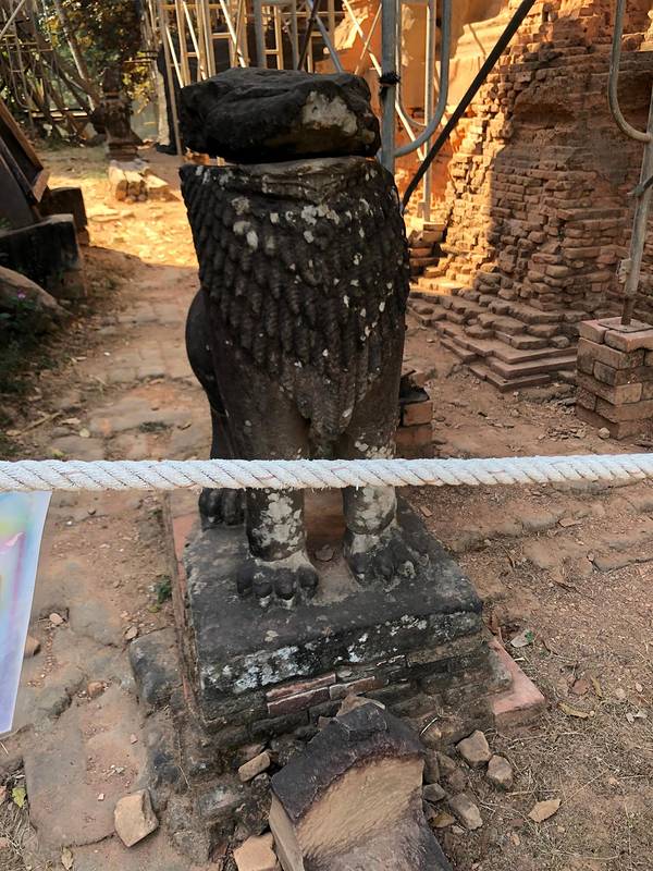 罗莱寺很小,损毁的比较严重,塌下来的红砖就堆在那里罗莱寺很小,损毁的比较严重,塌下来的红砖就堆在那里。现在正在维修中,隔着横七竖八的管家,还能看到部分精美的雕刻。在寺庙边有一所小学,有机会可以去捐点物资,他们似乎很需要。