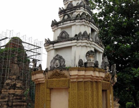 据说罗莱寺建在高棉历史第一个人工湖上,或许昔日很辉煌,到现在只剩下孤零零的几座塔据说罗莱寺建在高棉历史第一个人工湖上,或许昔日很辉煌,到现在只剩下孤零零的几座塔。望一望就已经觉得看完了,旁边有新建的寺庙和舍利塔。据说进去寺庙要脱鞋就放弃进去了。