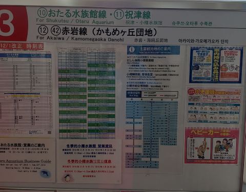 【交通】水族馆位于整个小樽市区的最北部,乘坐站前bus大约15分钟到达景区门口,时间是固定在,在站台的时刻表有提示。如果人比较多的话也可以考虑打车,全程大约5km出头,打车的话人民币约80元样子,也不是很离谱。