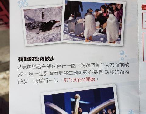 可观赏生活在北方海域的各种鱼类等动物,并有海豚、企鹅、海豹等精彩表演。