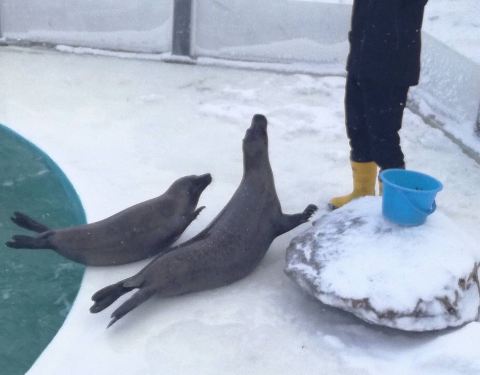 讲真,作为海边长大的孩子,对于水族馆真没什么兴趣,小樽的水族馆也真的是不太大😂虽然买的票可以看全套表演,但我的目的明确就是去看企鹅的,所以没有打算赶在第一场表演开始前到,时间有点早,刚好可以在三角市场解决午饭,因为三角市场就在小樽站旁边,真是人性化哈哈哈~