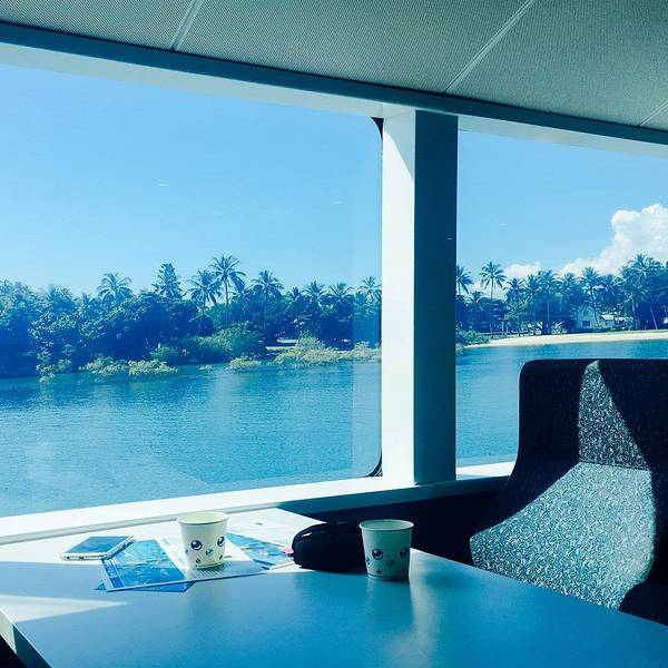 本来我们是想停船直奔玻璃底半潜水艇项目的,工作人员小姐姐偷偷告诉我们,应该先吃饭让别人去排队第一波,等饭吃好啦再过去的时候人已经少了可以节约排队时间~