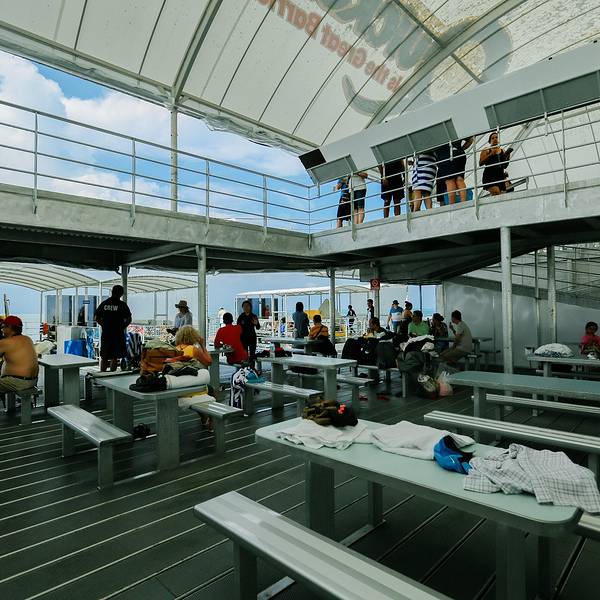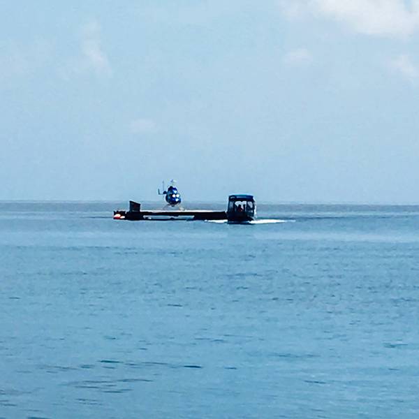 本着不能浪费的原则,塞得七七八八之后,我俩就直奔了玻璃底的半潜艇,果然没有啥人耶~~ 潜艇不远处就是直升飞机平台,小苍蝇一样~等了5分钟就上船啦~