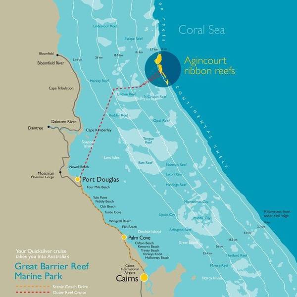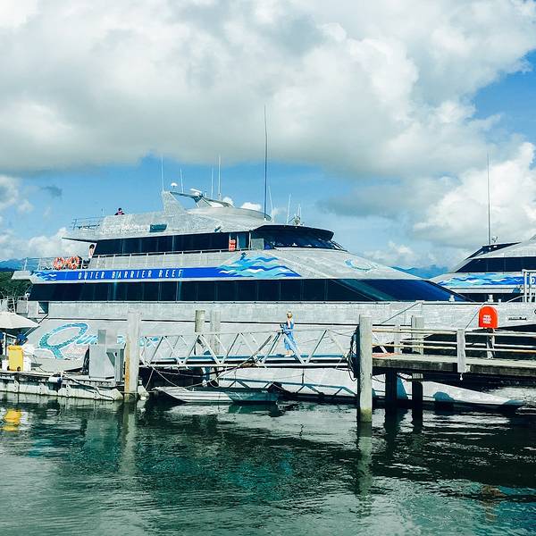 而外宝礁呢,就是大堡礁的最外层,这一块区域呢相对较远,开发也较晚,所以相对人类的影响没有那么大,所以珊瑚礁还保护得比较完好,风景会更美噢。我们选择的阿金考特礁Agincourt Reefs就在外宝礁,乘船需要到离凯恩斯小镇1个小时车程的道格拉斯港。银梭号是我们选择的另一大原因。银梭号是最大的双体游船,硬件棒,行驶相对较为平稳,银梭号在阿金考特礁的海上平台也是最大的,娱乐项目较多~ 事实也证明确实不虚此行!