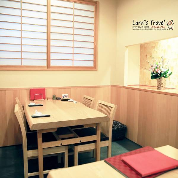 进店后就发现这家店的装修调子就很纯净,氛围也不错,我们被服务员引入一间小的餐室包厢,一个包间里可容纳两桌客人,隔壁桌是对中老年的日本夫妇,看起来很有涵养,说话也都是轻声细语的。导致后来上寿司时,我们一开始都不太好意思拿出相机拍照。