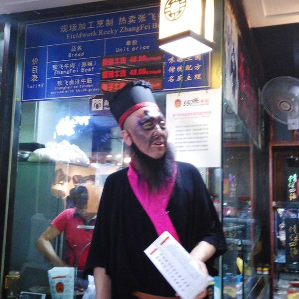 张飞牛肉,2到3两起卖,80多元一斤,随便夹了一些3两多,味道有些重,还是可以接受,这个“张飞”也很配合的让我拍了一张。