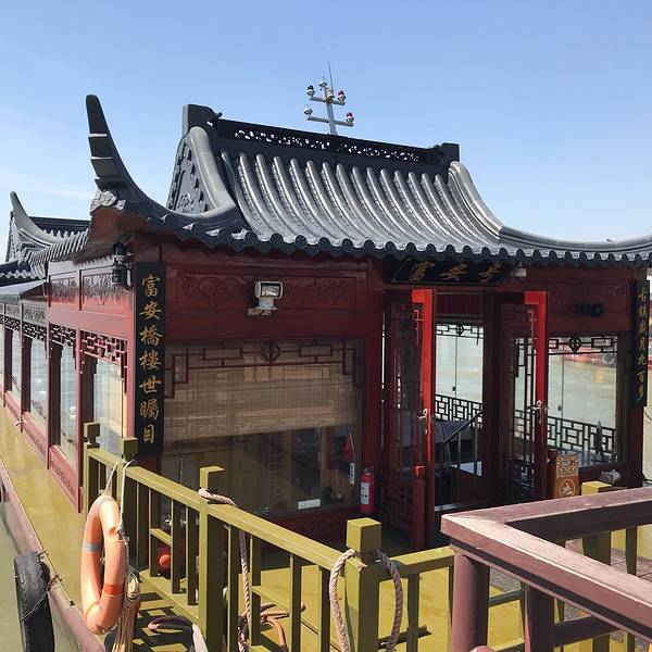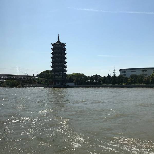 这个是套票里面的,起初以为是周庄古镇的小船,坑爹啊…… 这个码头也比较远,坐上这个船等于离开周庄古镇。到塔的那边去了。