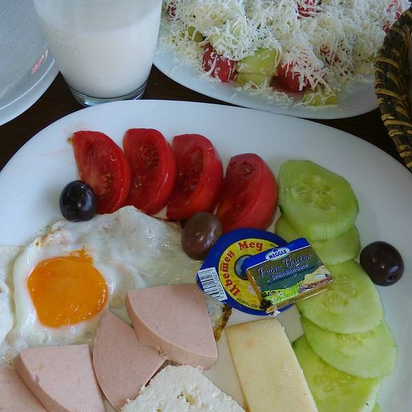 第二天午饭特意点了个马其顿特色沙拉,基本上就是希腊沙拉的做法,爽口的西红柿黄瓜片配上橄榄和许许...第二天午饭特意点了个马其顿特色沙拉,基本上就是希腊沙拉的做法,爽口的西红柿黄瓜片配上橄榄和许许多多的有点发腻的Feta芝士,中和地还不错。自从去了西班牙以后开始爱上橄榄,但发现也只有新鲜的橄榄好吃,在...第二天午饭特意点了个马其顿特色沙拉,基本上就是希腊沙拉的做法,爽口的西红柿黄瓜片配上橄榄和许许多多的有点发腻的Feta芝士,中和地还不错。自从去了西班牙以后开始爱上橄榄,但发现也只有新鲜的橄榄好吃,在英国荷兰超市买的橄榄都太咸,马其顿的黑橄榄也很不错。 展开