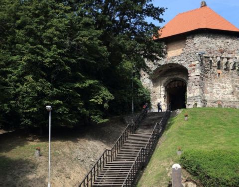 匈牙利史上曾经的辉煌,给世人留下了众多不朽的诗篇和历史的印迹。维谢格拉德古堡凭仗着秀丽的风景独特的地理位置,为多位皇帝青睐成为了最喜欢的行宫。维谢格拉德古堡始建于十二世纪,是安茹王朝时期兴建的,也是多瑙河畔山上最早建造的宫殿之一。在历史上维谢格拉德为军事重镇,因而在此修建城堡也是为了抵御鞑靼人的入侵,但还是没能抵御住土耳其人的进攻。 沿着木梯进人城堡,到处是一片废墟,到了半山腰的眼前的风景让你豁然开朗,多瑙河在这里转了一个90°的弯,从这里还可以看到多瑙河对岸伯尔热尼的山峰及纳吉毛洛什市具有中世纪风格的民房。