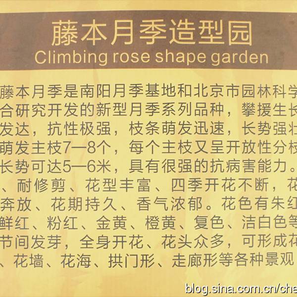 ...最喜欢从花木超市买回来各种形状的木架子,钉在自家的花园围墙上,任由藤本月季和蔷薇攀爬,非常漂亮5月24日,天气晴好,我们准备出去玩上一天,先去心仪已久的月季博览园。