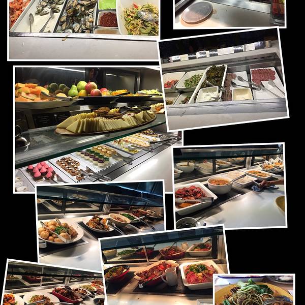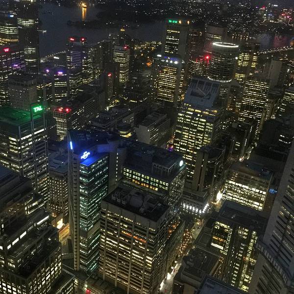 3.悉尼塔自助餐 餐厅接待处可以从悉尼塔下紧邻Pitter st一侧的Westfield Centre购物中心进入,进入购物中心后前往4层,餐厅接待处就在Chanel店斜对面。选择自助晚餐最好是半晚时间,即可以看到悉尼白天的景象,也可以观赏入夜后灯火辉煌的悉尼。自助餐的菜色中庸,没有什么生猛海鲜,但是热菜的选择丰富,可以吃到炒饭,有新鲜的虾,生蚝和青口,糕点口味偏甜,餐厅里人气很旺,但是上菜速度很快,基本不会出现空盘,客人再多,也会有序的排队拿取,不会出现抢食现象,这点很赞。一次用餐时间在1.5小时,可以旋转一圈,看不到悉尼歌剧院,它被一栋高楼正好遮挡住了,但是夜晚的悉尼城真的很美!