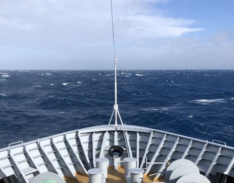 凌晨我们开始返航,进入德雷克海峡。早上风速每小时30海里(knots)以上,窗外风雨飘摇。去吃早饭的时候餐厅里的客人一只手能数过来,觉得自己还挺猛的,然而并没能得瑟很久。吃饭...第13天 德雷克海峡