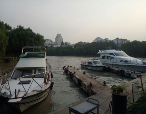 在信义坊吃晚饭,散散步,走过乾隆坊,往前走,右手边就是富义仓文化公园,是在富义仓遗址上建造的。边上就是京杭大运河,沿着步行道走,可以看到运河里来往的游船。夏末秋初的晚上,已经有了凉风,周边居民在公园里散步锻炼,很惬意。