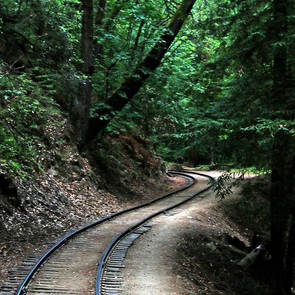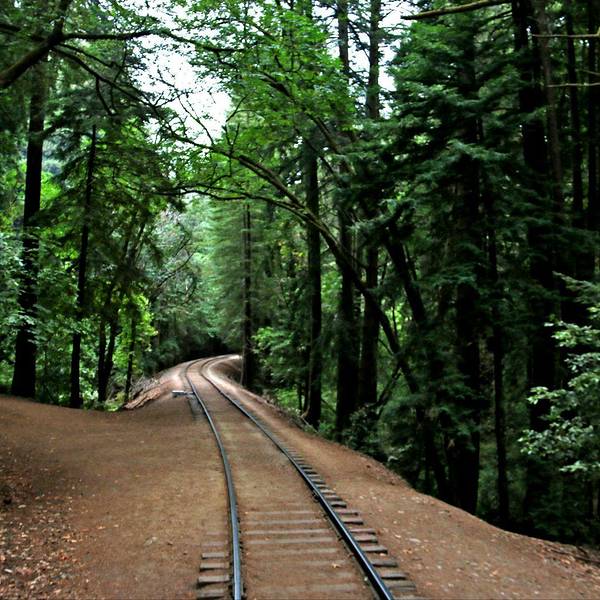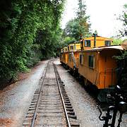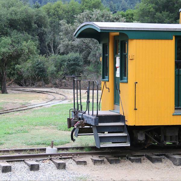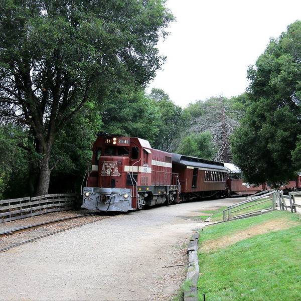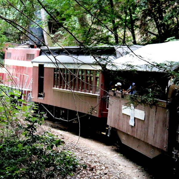加州海岸山脉中的世外桃源小镇-咆哮山庄,原始的红木森林里有条小铁路共旅游游览,只是换了内燃机车