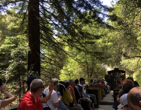 这个景点我去了两次,还是很有感觉,当你坐着古老的蒸汽小火车在参天的红杉林中穿行,亲新的空气、照入林中的阳光,伴着小火车的汽笛声非常惬意。