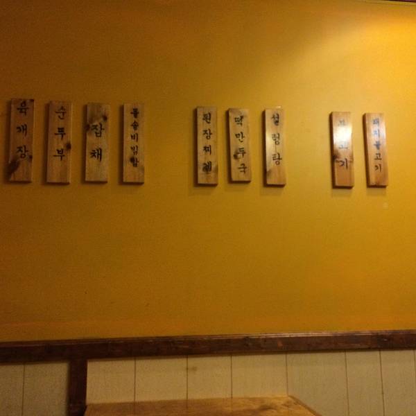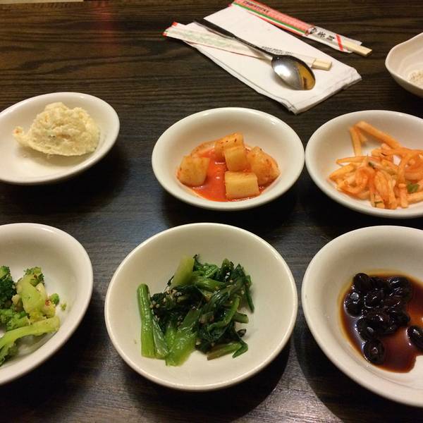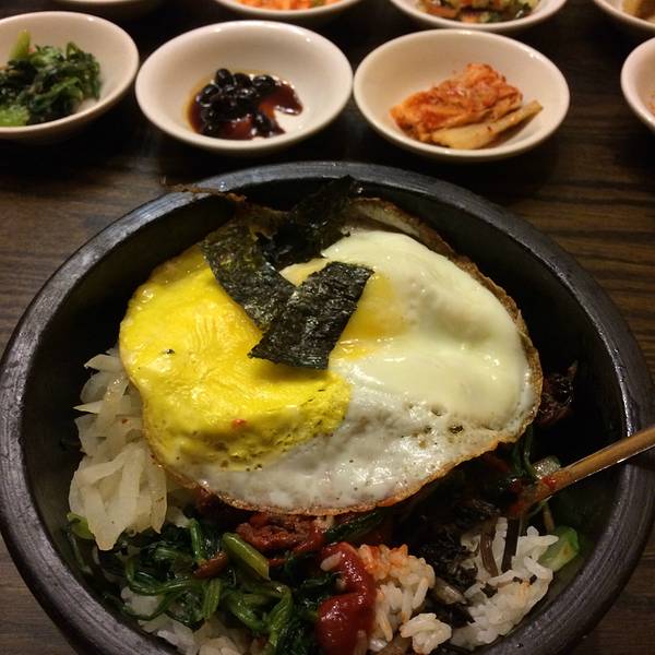 【食物推荐】:1)两人以上不妨考虑额自助火锅。以前是20美金一人,上次去略有涨价,但还算合理。2)自助火锅的话可以吃到很多种肉(不限量),还赠送无限量小菜,以及豆腐海鲜汤或是炒年糕或是蒸蛋。3)最好吃的烤肉要数韩式腌牛肉(Marinated Beef),香辣猪肉(Spicy Pork)和五花肉(Pork Belly)。腌牛肉甜甜的,非常嫩,是我和朋友们的最爱。喜欢吃辣的人可以考虑香辣猪肉或是香辣鸡肉。五花肉的话烤到表面微焦,然后蘸上甜酱或是炒年糕的酱也是非常的赞。外面还可以包上生菜,这样就不会太腻。4)单独点菜的话石锅拌饭是比较经典的项目,牛高汤也是非常的鲜。5)他家的小菜非常好吃,每次去都会稍有不同,最好吃的有土豆沙拉,鱼饼(fish cake),藕片,甜豆。而且可以无限量续杯,配合火锅真是棒极了。