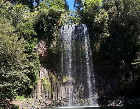 米拉米拉瀑布位于阿瑟顿高原的小镇,是附近的瀑布群中较大的瀑布,因而被命名为米拉米拉瀑布,是澳大利亚较为上镜景点之一,可别忘记带上您的相机。足够幸运的话您还有机会一睹鸭嘴兽的真容。1. 瀑布环线瀑布环线位于米拉米拉小镇附近,长16公里,环线上共有四座瀑布。你可以从米拉米拉以东1公里PalmerstonHwy处的Theresa Creek Rd出发,先欣赏环线上较大的米拉米拉瀑布,这里四周是苍翠繁茂的雨林。瀑布倾泻至下方的一个原始水池,您可在凉爽的水流中畅游,保证神清气爽。另外,还有一片迷人的野餐草地可供您休憩。 继续前行,能够看到兹利瀑布(Zillie Falls)。下坡后到达艾琳佳瀑布(Ellinjaa Falls),然后返回Palmerston Hwy。沿着Palmerston Hwy向前5.5公里,有一条岔路通往梦佳里瀑布(Mungalli Falls),距离公路5公里。瀑布下的水潭很适合游泳,而在这条瀑布所在的环形山路Theresa Creek Road上,还有Zillie Falls和Ellinjaa Falls两个瀑布。2. 酸奶和奶酪米拉米拉瀑布不得不提从Millaa Millaa瀑布环线再沿着Palmerston Hwy向南5公里,有一个叫Mungalli Creek Dairy的奶制品店,可以在停下车后先去后面的奶牛场摸摸小牛,品尝这里的酸奶和奶酪。