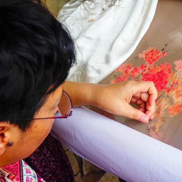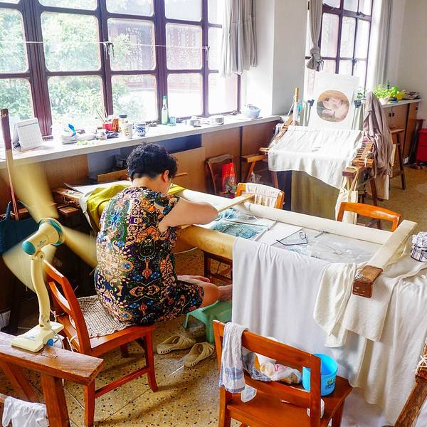 DAY2:苏州刺绣研究所及环秀山庄,推荐★★★★ 刺绣研究所是和环秀山庄一起的,由于环秀山庄没啥看头,我就不放照片了,4星推荐几乎都给刺绣研究所。 建议:研究所和博物馆在一起,都在旁边,博物馆只能看到刺绣的展品,研究所就不一样了,但是记得要提前网上预约!!!我们那么没预约硬闯,幸好别人有时间。会有专人带你看整个刺绣的过程哦,但一定要记得预约。那里都是师傅在二楼刺绣,作品送往一楼展销,有很厉害的双面绣!有的甚至几十万呢,不让拍照,没拍。 简单介绍一下刺绣:挑线燃线,设计,分工,刺绣,裱花等都有专门负责的老师,环环紧扣,最后才能成作品,至少学三年,还得会画画功底,所以现在学的人不多,工资也是统一发。刺绣还分:细秀,乱针绣(要有细秀的基础)。苏州最著名的是绣猫猫和金鱼哦。复杂的颜色接近的山水画也很难绣。PS:那儿唯一一个男的刺绣师傅已经退休了,下面给大家感受一下。