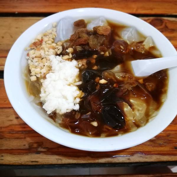 新场古镇的小吃 最后,一碗在成都平原夏天必不可少的冰粉结束食场之战,相对于成都市区的五花八门的冰粉,新场的冰粉一如古镇气质,朴实许多,醪糟、红糖水、花生碎、葡萄干便能清凉你全身的暑气。