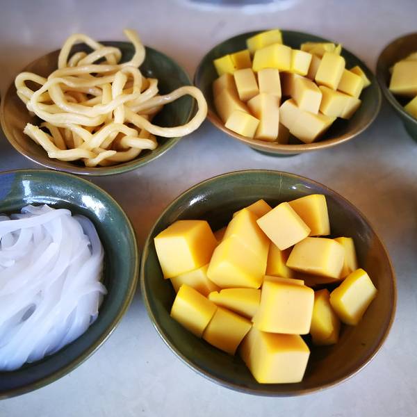 新场古镇的小吃 新场的凉粉不同于周边的古镇的条状,而是一整块一整块,赛一口进嘴里,绝对大大的满足感。