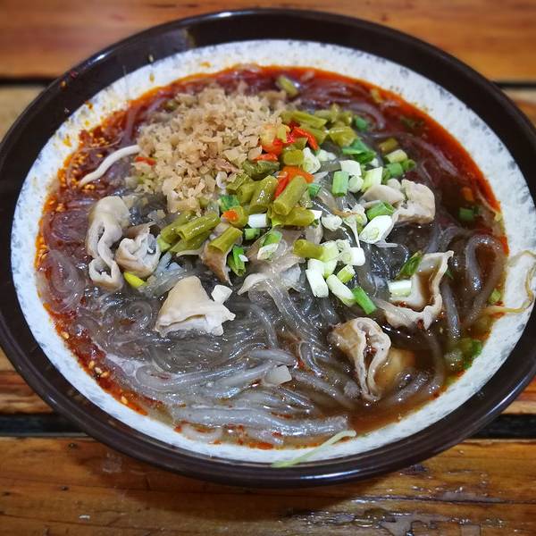 新场古镇的小吃 来到古镇必试的食物便是肥肠粉。其实肥肠粉在整个大邑县都很出名,相隔不远的安仁古镇四处也可见肥肠粉贩售。肥肠独有的口感和味道,让喜欢它的人欲罢不能,而抗拒它的人又完全没有办法卸下武装,不过好在好这一口的人实在不在少数。