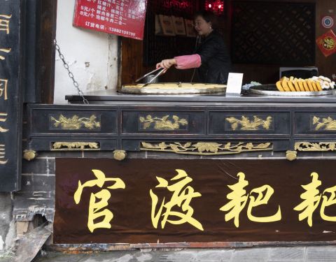 新场古镇的小吃 小镇的街头还可以品尝到成都平原注明的小吃—甜水面。