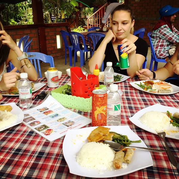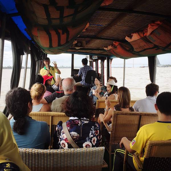 8点半的时候大家会乘上大巴或者小巴车出发去湄公河。