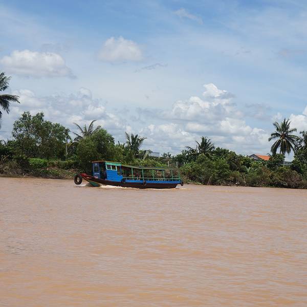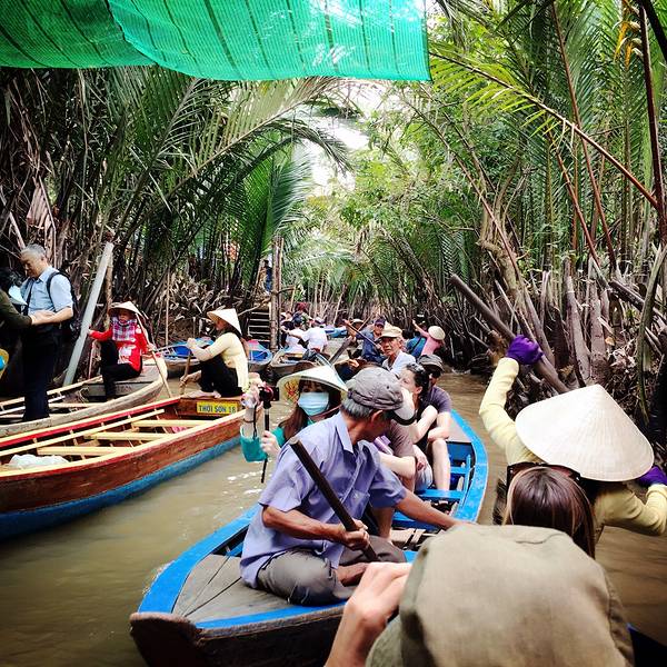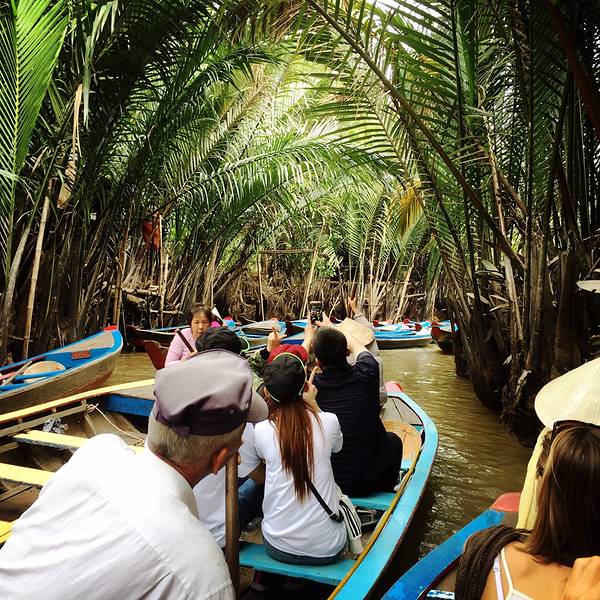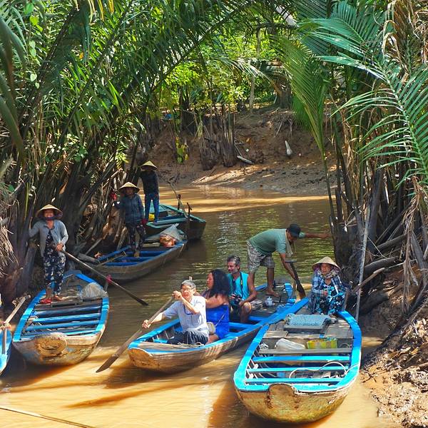 体验湄公河还可以包一艘小船,于河流之上缓缓穿行,景色更加迷人。包船一般一个小时15美金左右。