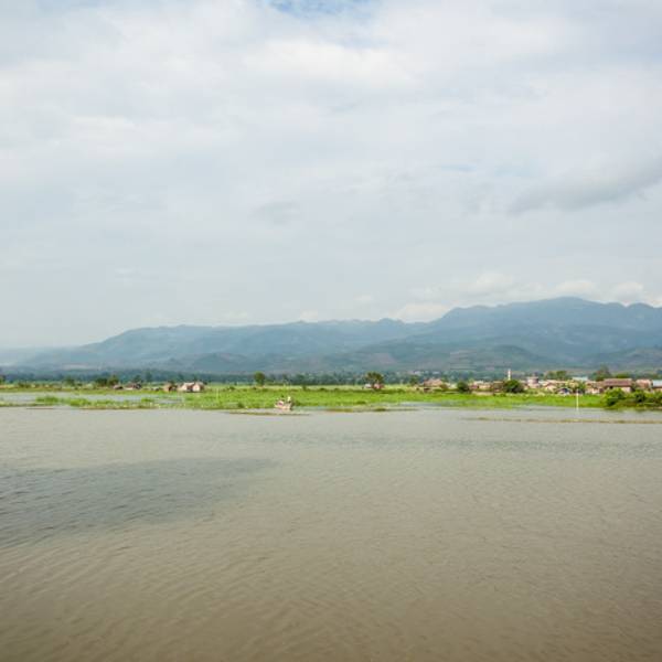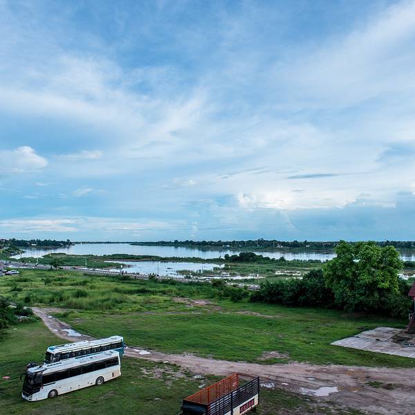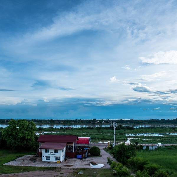 由古城内骑车来到湄公河畔,只需十几分钟的路程。湄公河缓缓地于此穿行而过。沿岸,很多船只停靠,很多当地的妇女,还带着新鲜的蔬菜,来这里清洗。一些年轻人,则在河岸边的沙地上打起排球,与这片河流和谐的融合在一起。