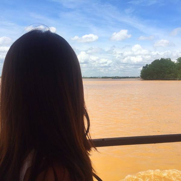 到了湄公河,大家伙先坐着游船观赏湄公河。