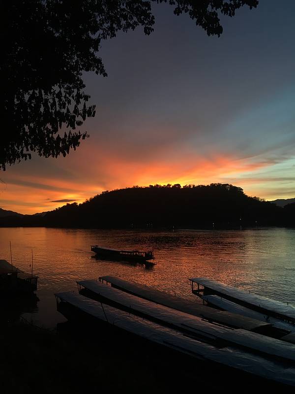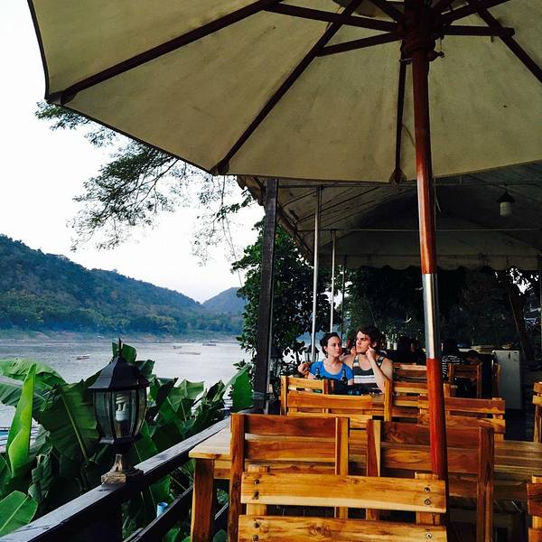 琅勃拉邦的苏万班琅街紧挨着湄公河,沿街的法式老宅子基本都作旅游客栈,临河的一边则全是露天酒吧及餐饮。这里一、二月份的冬日全无半点寒意,气温如春不冷不热,亦无蚊虫叮咬。湄公河干流全长4908千米