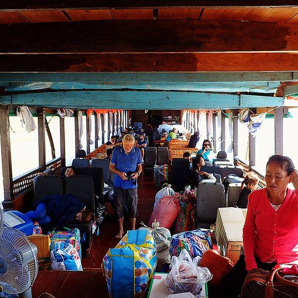 当然这不是我选择慢船的原因!不过花2天的时间消磨在湄公河流域还是非常值得的体验!我和滚滚一样,作为生活在内陆的孩子,对于坐船还是很有新奇感的!船上聚集了外国游客和托运东西回家的本地人,一个是旅行观光,一个是为了全家生计。