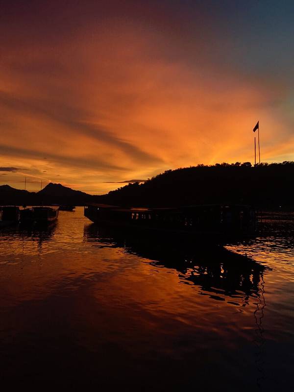 河上的游览船,花钱用餐比花钱游船来得划算。喝着老挝啤酒,看着湄公河日落,这样的生活真是太惬意很多游记都推荐坐船看日落,但想着时间较长,而且不怎么便宜,我们就选择在河边找一家餐厅一边吃一边等日落河边痴迷于手机游戏的小和尚们餐厅的menu封面很有特色。青木瓜沙+咖喱米粉,不会给正式的晚餐带来大的负...很多游记都推荐坐船看日落,但想着时间较长,而且不怎么便宜,我们就选择在河边找一家餐厅一边吃一边等日落河边痴迷于手机游戏的小和尚们餐厅的menu封面很有特色。青木瓜沙+咖喱米粉,不会给正式的晚餐带来大的负担,分量刚刚好。老挝黑啤,比一般啤酒更爽口,麦香更浓。喝着老挝啤酒,看着湄公河日落,这样的生活真是太惬意。河上的游览船,花钱用餐比花钱游船来得划算。 展开