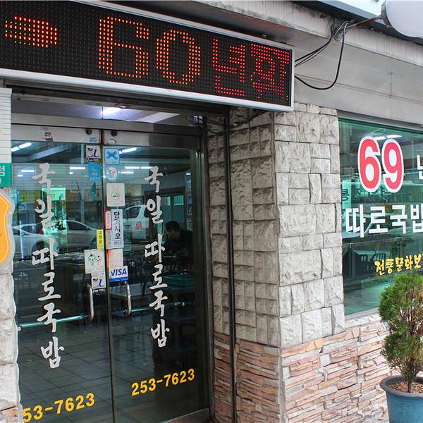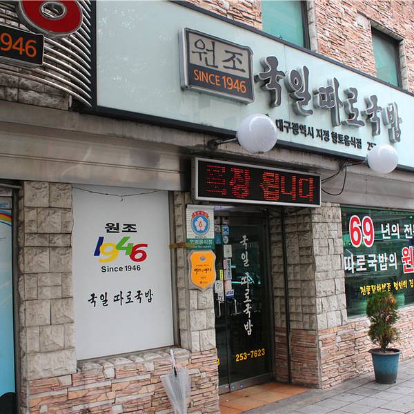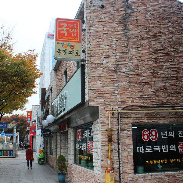 国一分开汤饭类似于中国东北的猪血汤,也像是韩国醒酒汤的一种,这样的店很多都是24小时营业。说起大邱美食这家店不能不提,这里在1966年已经被指定为传统文化保存的大邱市乡土传统饮食店,是一家拥有69年传统的历史悠久的汤饭店。算是大邱的名门!外地人去大邱有机会一定会吃上一碗的,店内仍然保留传统的分为,如果不说还真不知道这是远近闻名的名店。店内的客人很多都是大邱的老客人,再加上这家店的位置特别好,就在市中心,所以非常方便游客造访。 【交通】乘坐地铁1号线在中央路站下车,出4号口出来直走就可以了。再或者从大邱站下车穿过东城路直接可以步行过来,街上都有中文的指标。 【周边可步行到达景点】周围有很多大邱著名景点,东城路、药令市场等市中心的景点都在旁边,步行20分钟以内都能到达,所以制定行程最好是放在一起,这一代步行参观遍了可能得需要两天的时间。另外,乐天百货、东亚百货就在国一分开汤饭旁边。隔着一条街而已~