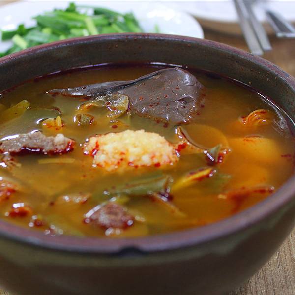 汤头是用大骨加入特别的材料熬制,之后加入牛肉、牛血等一起调制,起初在大邱当地非常受欢迎,经过几...