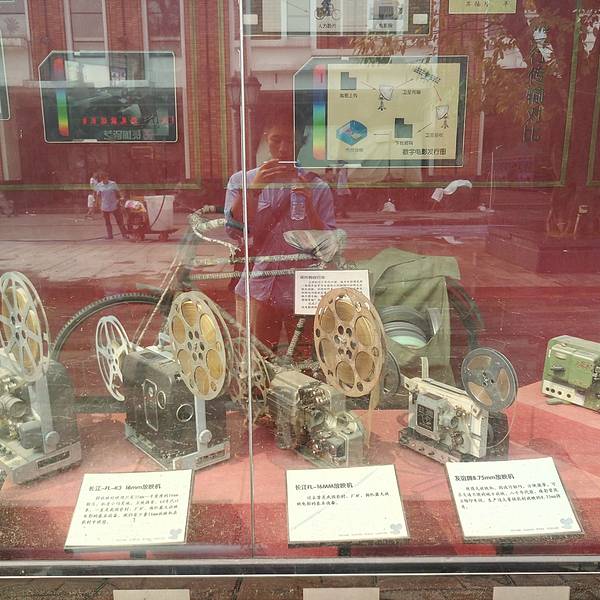 珠江电影厂的老厂房改造的,自然少不了影视话题。园区右边是珠江电影文化长廊,介绍了珠影厂以前拍过的影视作品,有很多明星海报剧照,以及许多退休的老式电影器材,隔着玻璃橱窗观望对面的繁华世界——园区左边是多层的楼房围合的一个大街区,影视工作室都在楼上,一二楼都是咖啡吧和餐厅,热闹程度已经让人忘了这是个电影厂。当然,环境和情调才是文青和小资们最爱的。