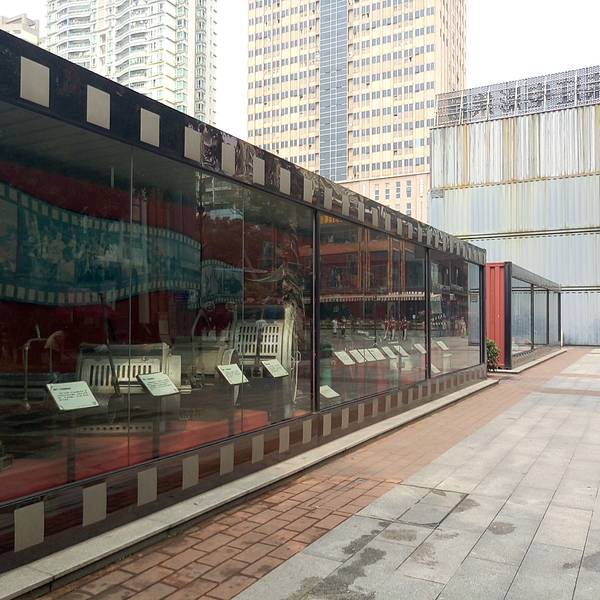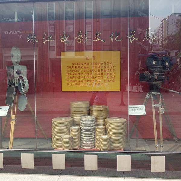 正对珠影大门的地方修了一条介绍珠江电影历史的长廊,介绍了以前拍过的影视作品,有很多明星海报剧照...