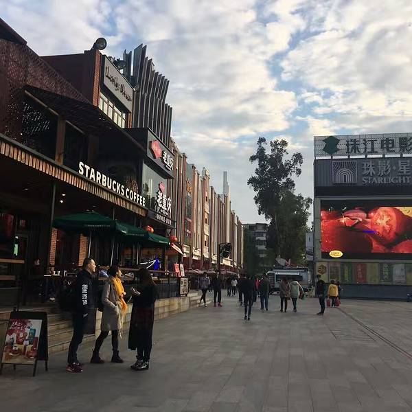 客村地铁站出来就是。 这里原来是珠江电影厂的老厂房,经过整合改造的一个文化商业街。正对珠影大门的地方修了一条介绍珠江电影历史的长廊,介绍了以前拍过的影视作品,有很多明星海报剧照,以及许多退休的老式电影器材。大门左边是文化商业街区,有不少文化影视工作室都在楼上,一二楼都是美食连锁、咖啡吧和餐厅,也有些个性饰品店。这片街区不大,来这里的人主要都是吃饭聊天的,不过整体环境较新,还是比较舒服的。