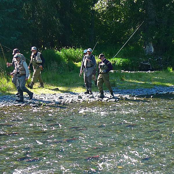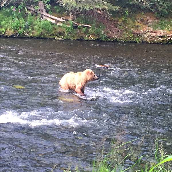 【特色】俄罗斯河是鱼的天堂,当然也是熊的天堂,每天都能看到几十个美国老爷爷,穿着防水衣裤站在河里钓鱼。