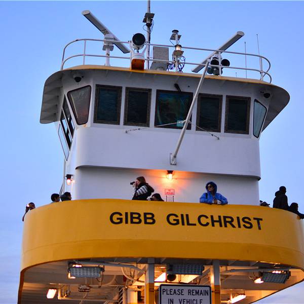 自驾车可以直接开上渡轮,停稳,人就可以出来看风景了。这辈子真的没看过这么多海鸥!很有意思