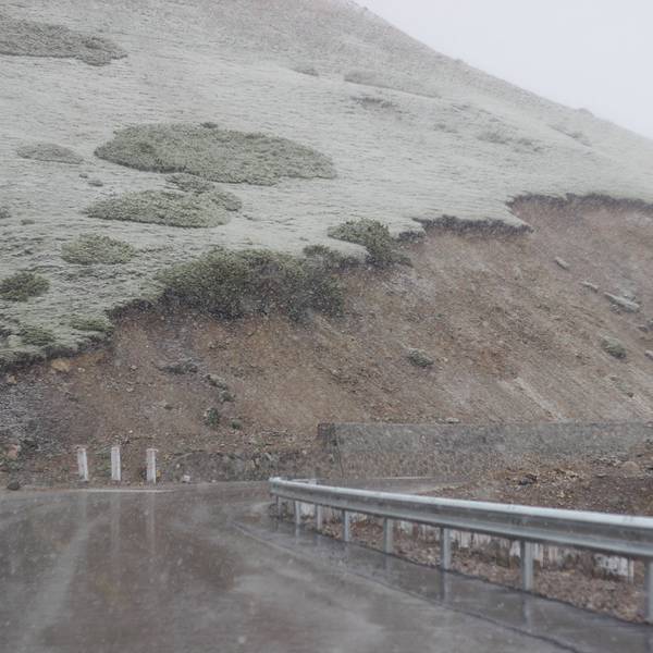 我们把袄子都已经清到行李箱了,结果真是下暴雪的天气穿个短袖出来拍照,冷的不行又立马进车厢,在抖个不停今天走伊昭公路,经过白石峰。突然在7月的天下暴雪,我们是比窦娥还冤吗?