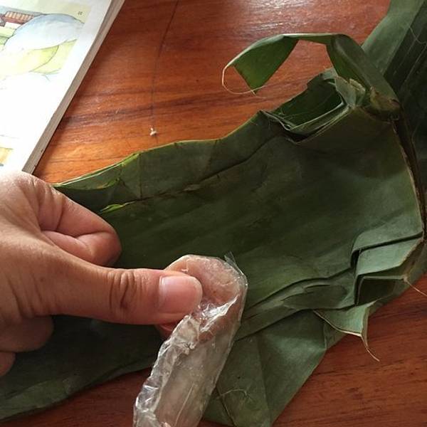 小伙伴买的酸肉,拳头大的叶子里面包了一个指甲盖大小的肉块。哈哈,笑死我了