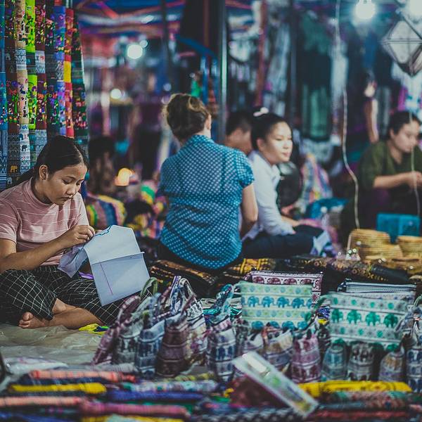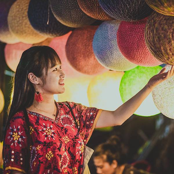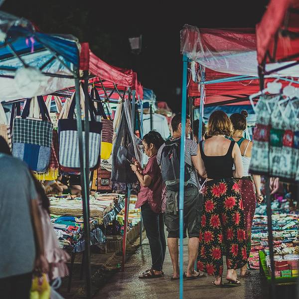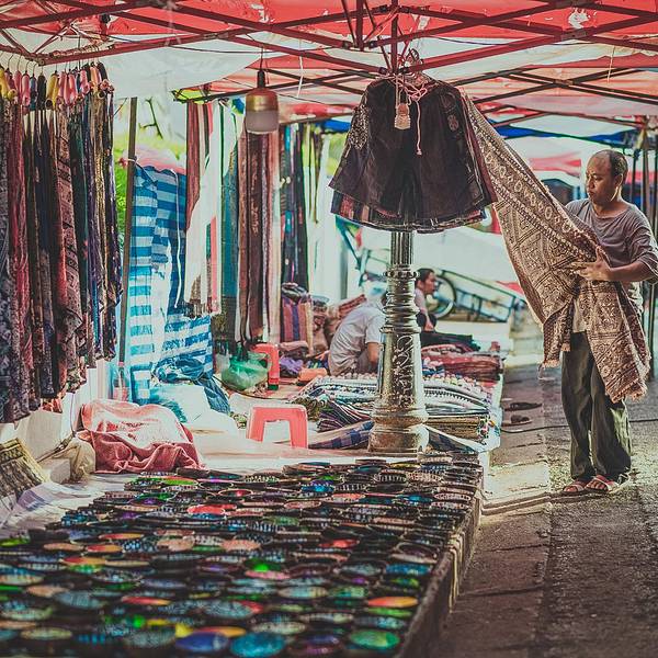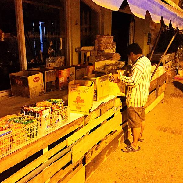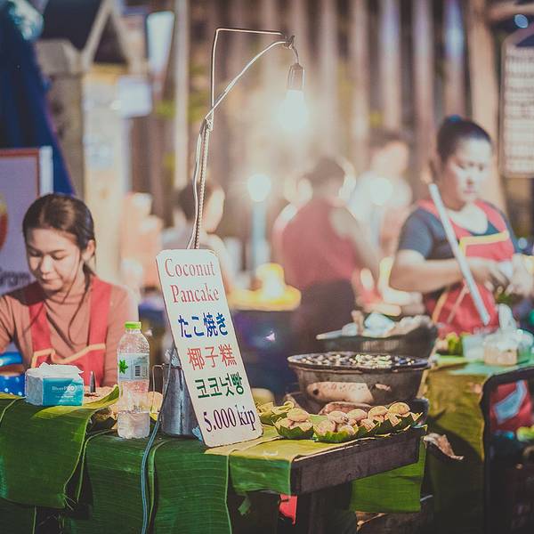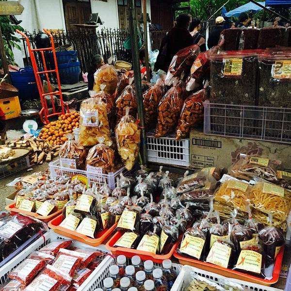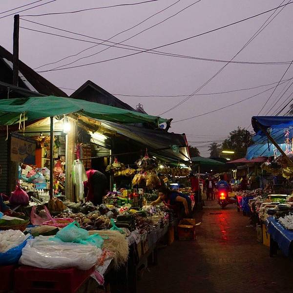 之所以写在一起,是因为夜市跟早市都是在洋人街上,早市在夜市以北的街上,布施仪式也是在洋人街上。洋人街承载了琅勃拉邦很多的商业,饭店、旅店、服装店大多在洋人街上。白日里的洋人街是有着异域风情的步行街,充满了法国风情和东南亚风情,到了晚上时,摇身一变成了夜市。琅勃拉邦的夜市安静地并不像个市场,因为商家们貌似无心营业,都在忙自己,这也就方便了游客们随便挑挑拣拣,买卖随缘,大家各自开心就行。从头走到尾,整个夜市也只需要20分钟。夜市上大多卖的是旅游纪念品,虽然不是很有吸引力,但也算琳琅满目,五彩缤纷。竹制品和绘画制品很多。除了商品,还有一些小吃水果,价格不高。很喜欢这里的手工艺品,色彩斑斓,做工精致的手工碗碟,纯手工的材质独特的纸灯笼,都是琅勃拉邦文化的缩影。早市倒是热闹得多,大多是当地人出来采买,所以卖的东西也更加五花八门,蔬菜、食品,还有一些稀奇古怪的玩意儿,熙熙攘攘,开了眼界。 地址:Sisavangvong Road, Luang Prabang, Louangphabang, Laos