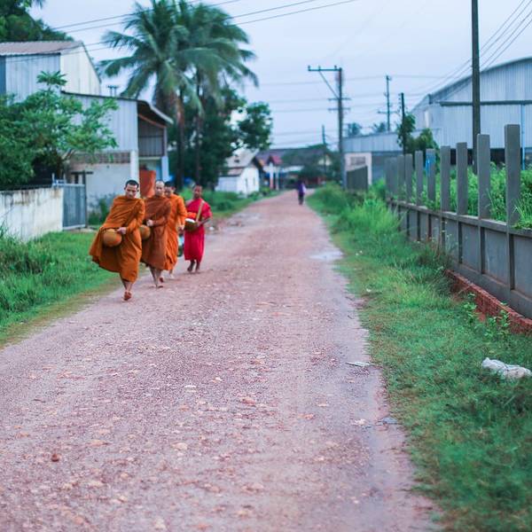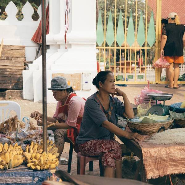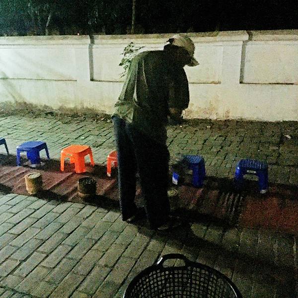 夜市溜达完也是基本累的够呛,毕竟都是在大巴上晃悠超过24小时的人儿,还是回青旅睡觉吧。原本相约第二天清晨起来看布施,最后谁也没有起得来,不过如果体力超好的或者时间安排非常紧凑的,可以清晨布施-琅勃拉邦古城-光西瀑布-普西山这样浏览,未日出就先行,日落黄昏再归。为了看上去显得有逻辑,那就先从布施开始记录。布施,即以慈悲心施福于他人,金钱食物皆可。各路游记上记载的时间大约是当地时间每天清晨的五六点之间,总之我是四点半起来的,地点大约是在琅勃拉邦夜市街上,偶遇一个卖斋饭的大娘,跟着她走到头也就差不多到了,路上会经过琅勃拉邦早市,早市未开,但各路小贩已然开始了一日的忙碌。