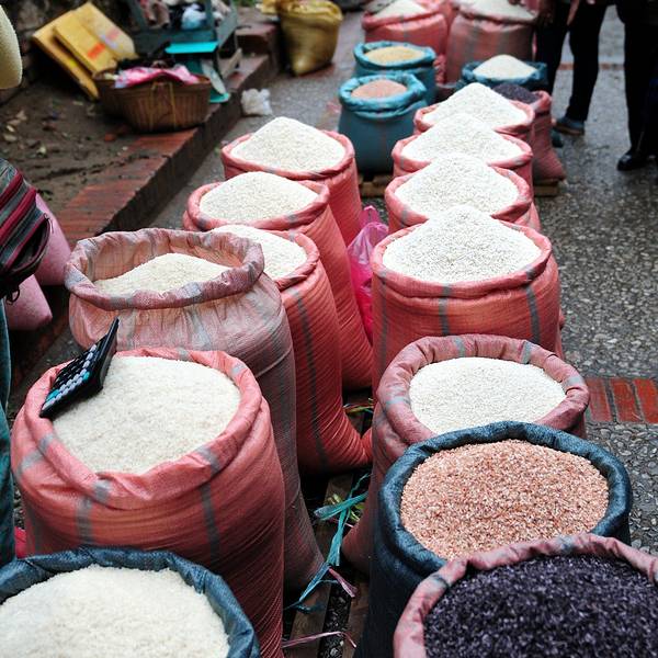 看完布施后我们在皇宫后面的巷子里赶早市,通常情况下早市会在上午11前结束,市场上各种商品玲琅满目,各种食品应有尽有。巷口有买老挝米的商贩,上等的大米8000KIP/公斤,这几天的米饭很是映像深刻!