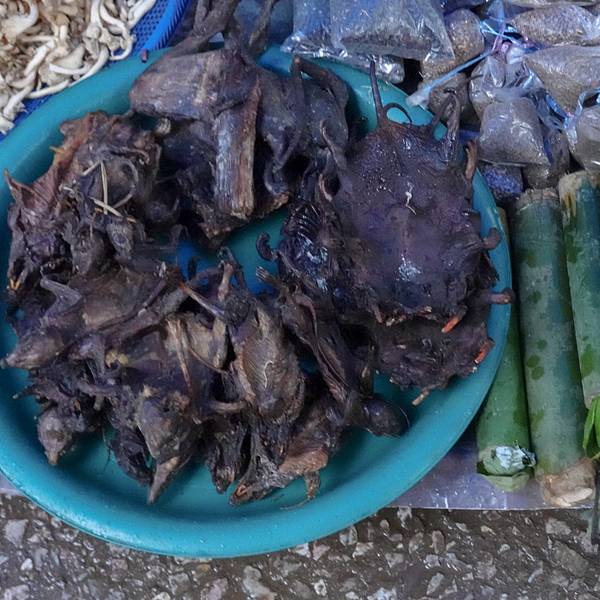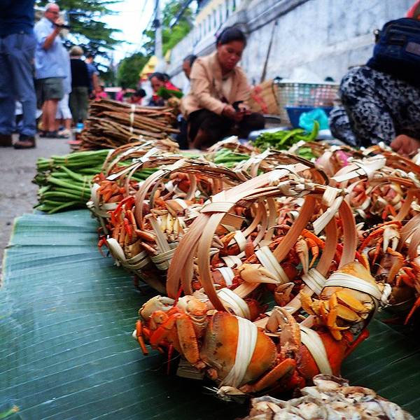 琅勃拉邦的早市是当地人都去购买东西的地方,布施结束,刚好可以去逛一逛早市。这里到处都是小贩,兜售着令人眼花缭乱的五金器具和成堆的新鲜土特产品,也能够淘到许多纯正的本地货或者土特产,而且最有意思的是...琅勃拉邦的早市是当地人都去购买东西的地方,布施结束,刚好可以去逛一逛早市。这里到处都是小贩,兜售着令人眼花缭乱的五金器具和成堆的新鲜土特产品,也能够淘到许多纯正的本地货或者土特产,而且最有意思的是有很多奇奇怪怪的东西……早市真的有趣,老鼠有烤的,炸的,剥皮的,还有风干的…小青蛙小螺蛳…还有卖蝙蝠的,把蝙蝠串成一串…还有各类野菜