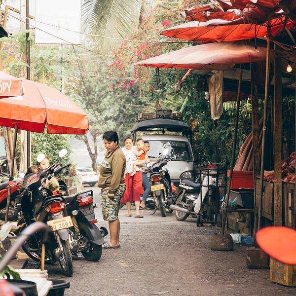 想看到本地早市,还得起一大早。王宫博物馆旁的巷子里已经熙熙攘攘。