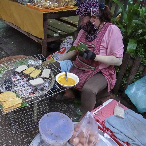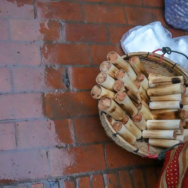 说是早市,其实营业到下午。看完布施,再来早市逛逛,感受当地地道的市井气息。伴着甜椰丝一起食用的黑糯米饭,糯米粒粒分明,米粒喷香有嚼劲,分量不大类似年糕的糯米饼裹上蛋液在火上烤制,没有其他或咸或甜的作料,能吃出糯米本身的甜,越吃越有味