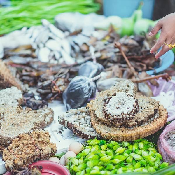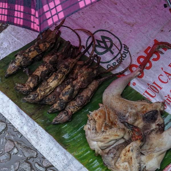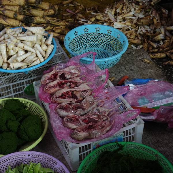 琅勃拉邦的早市,因为老挝的特殊地理位置和综合当地人的饮食习惯,所以经常看到早市上如江鱼,鸟类,麂子,…