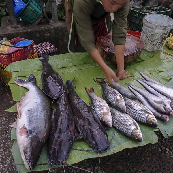 - 那些想看又不敢看的“商品”:用芭蕉叶铺着的摊位上,刚从河里打捞上来的鲶鱼以及叫不出名的河鱼一脸...